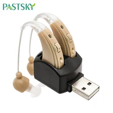 Buy Rechargeable Ear Hearing Aid Double Headphone Amplifier High Power digital Hearing Aids Ear behind the ear for deaf elderly